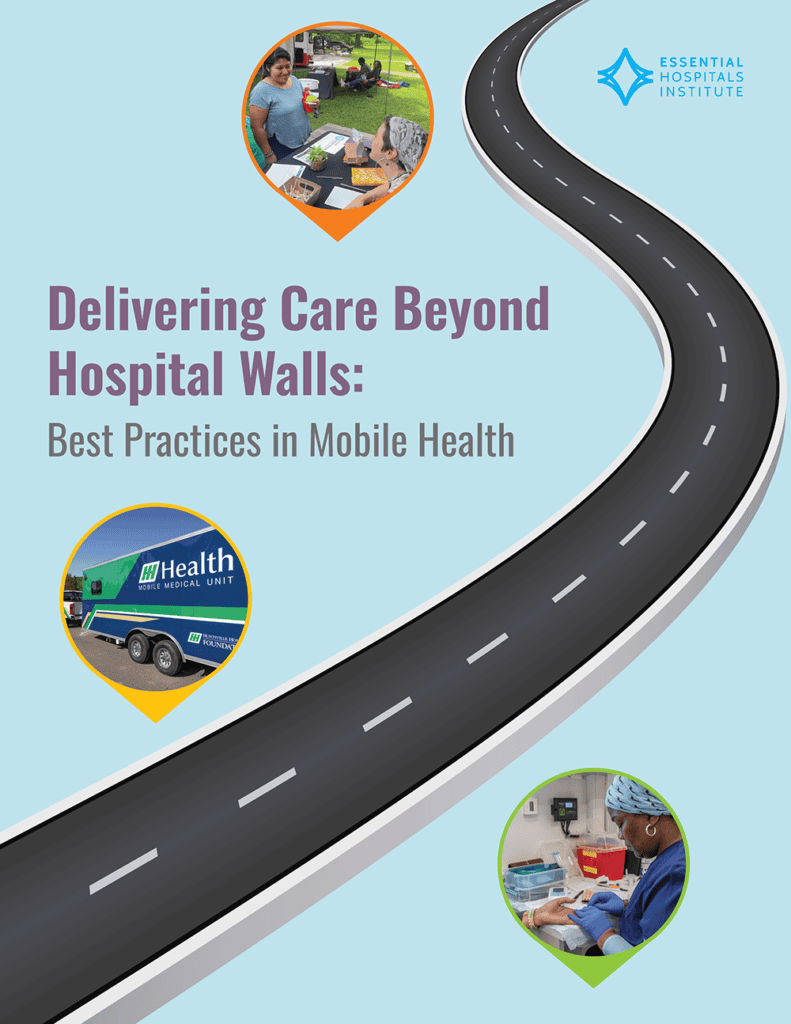 Delivering Care Beyond Hospital Walls: Best Practices in Mobile Health illustrates the value of mobile health care delivery, particularly for the patients and communities essential hospitals serve, and showcases the innovative work of participating hospitals. The report also shares key lessons learned, practical strategies, and actionable insights gained throughout the learning collaborative process for health systems seeking to build or scale mobile care programs.